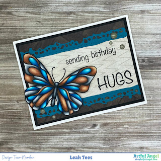 I chose to work with the Flutterby stamp set from Artful Angel. This color palette really spoke to me for this stamp...sometimes that happens! I look at a color palette and it tells me what image it needs. I promise I'm not weird, I just love colors!